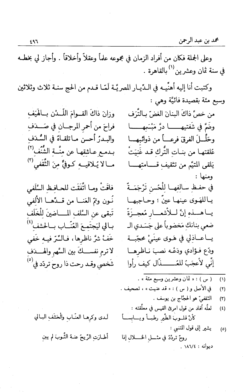 وكتبت أنا إليه أهنيه في الديار المصرية لما قدم من الحج سنة ثلاث وثلاثين وسبع مئة بقصيدة فائية وهي: