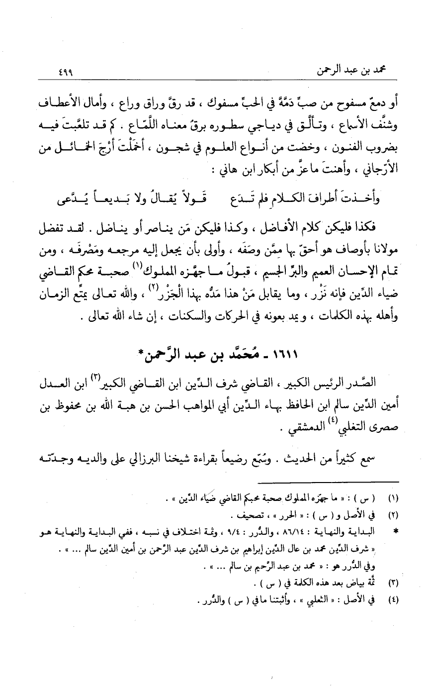 الصدر الرئيس الكبير، القاضي شرف الدين ابن القاضي الكبير ابن العدل أمين الدين سالم ابن الحافظ بهاء الدين أبي المواهب الحسن بن هبة الله بن محفوظ بن صصرى التغلبي الدمشقي.