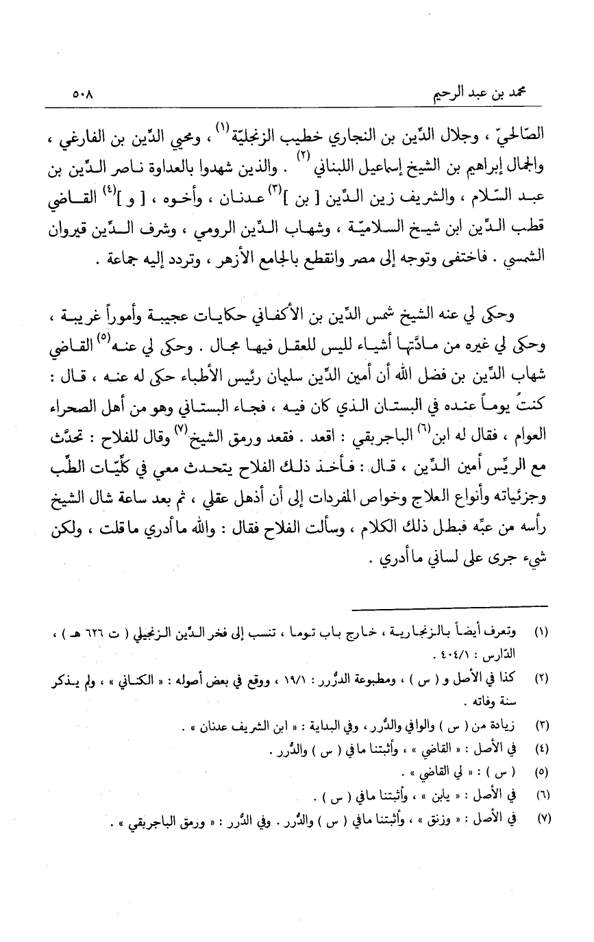 الصالحي، وجلال الدين بن النجاري خطيب الزنجلية، ومحيي الدين بن الفارغي، والجمال إبراهيم بن الشيخ إسماعيل اللبناني. والذين شهدوا بالعداوة ناصر الدين بن عبد السلام، والشريف زين الدين بن عدنان، وأخوه، والقاضي قطب الدين ابن شيخ السلامية، وشهاب الدين الرومي، وشرف الدين قيروان الشمسي، فاختفى وتوجه إلى مصر وانقطع بالجامع الأزهر، وتردد إليه جماعة.