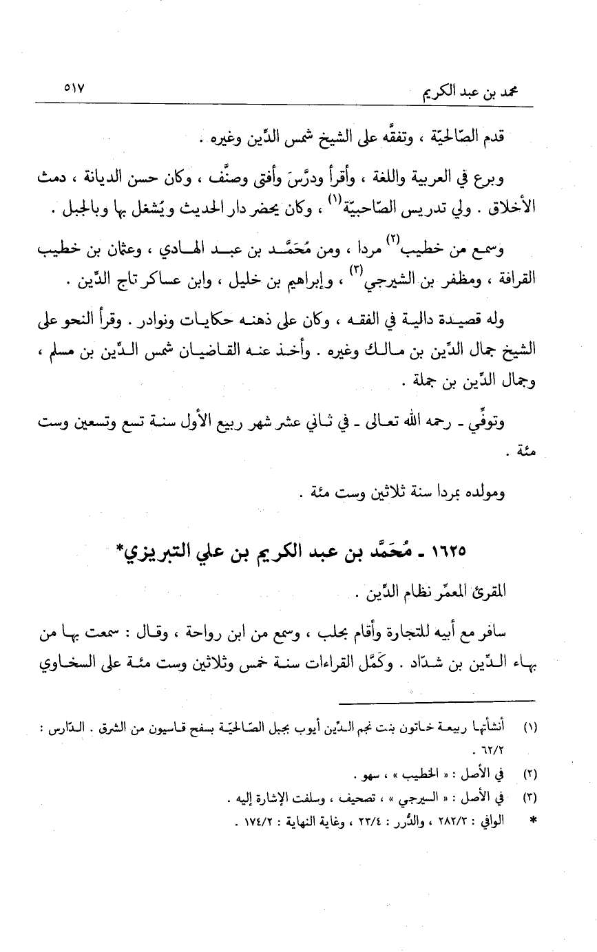 محمد بن عبد الكريم بن علي التبريزي