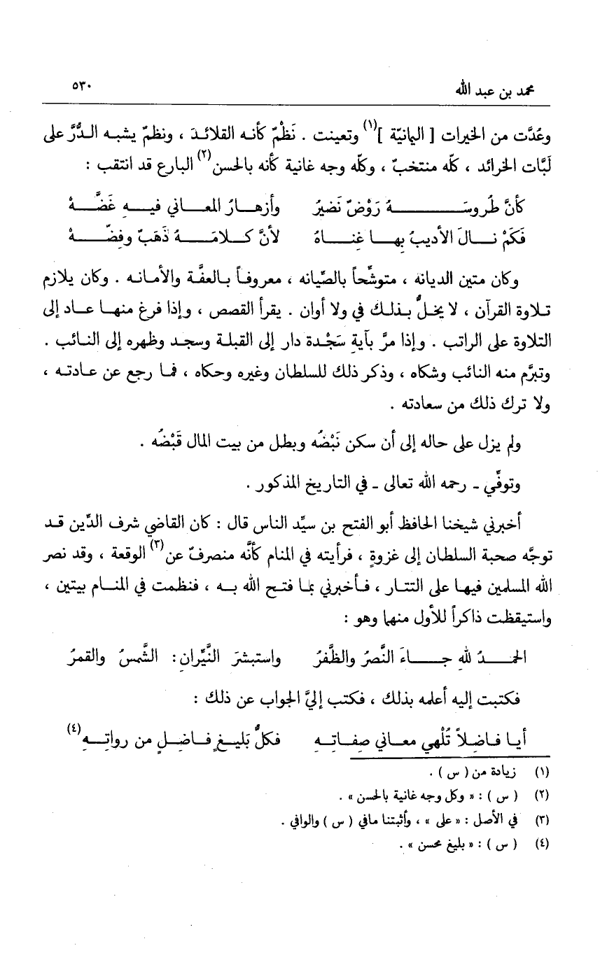 وعدت من الخيرات اليمانية وتعينت. نظم كأنه القلائد، ونظم يشبه الدر على لبات الخرائد، كله منتخب، وكله وجه غانية كأنه بالحسن البارع قد انتقب: