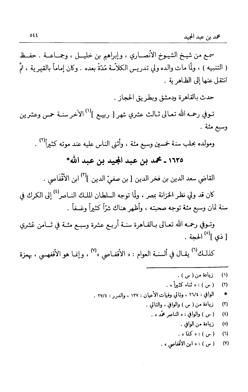 القاضي سعد الدين بن فخر الدين بن صفي الدين ابن الأقفاصي.