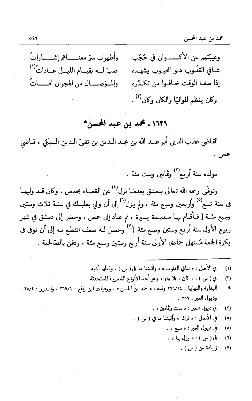 القاضي قطب الدين أبو عبد الله بن مجد الدين بن تقي الدين السبكي، قاضي حمص.