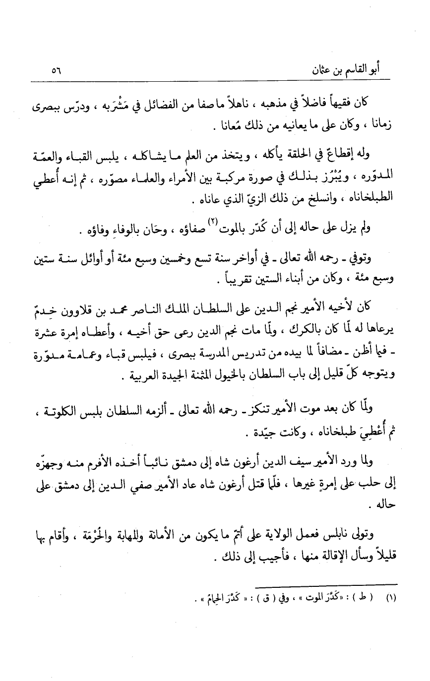 ولما كان بعد موت الأمير تنكز - رحمه الله تعالى - ألزمه السلطان بلبس الكلوتة، ثم أعطي طبلخاناه، وكانت جيدة.