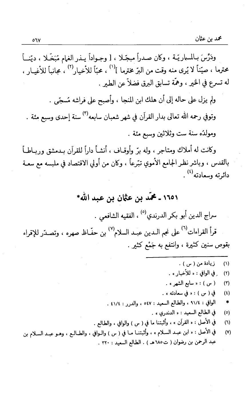 ودرس بالمسمارية، وكان صدراً مبجلا، وجواداً يذر الغمام مبخلا، ديناً محترما، صيناً لا يرى منه وقت من البر محترما، محباً للأخيار، مجانباً للأغيار، له تسرع في الخير، وهمة تسابق البرق فضلاً عن الطير.