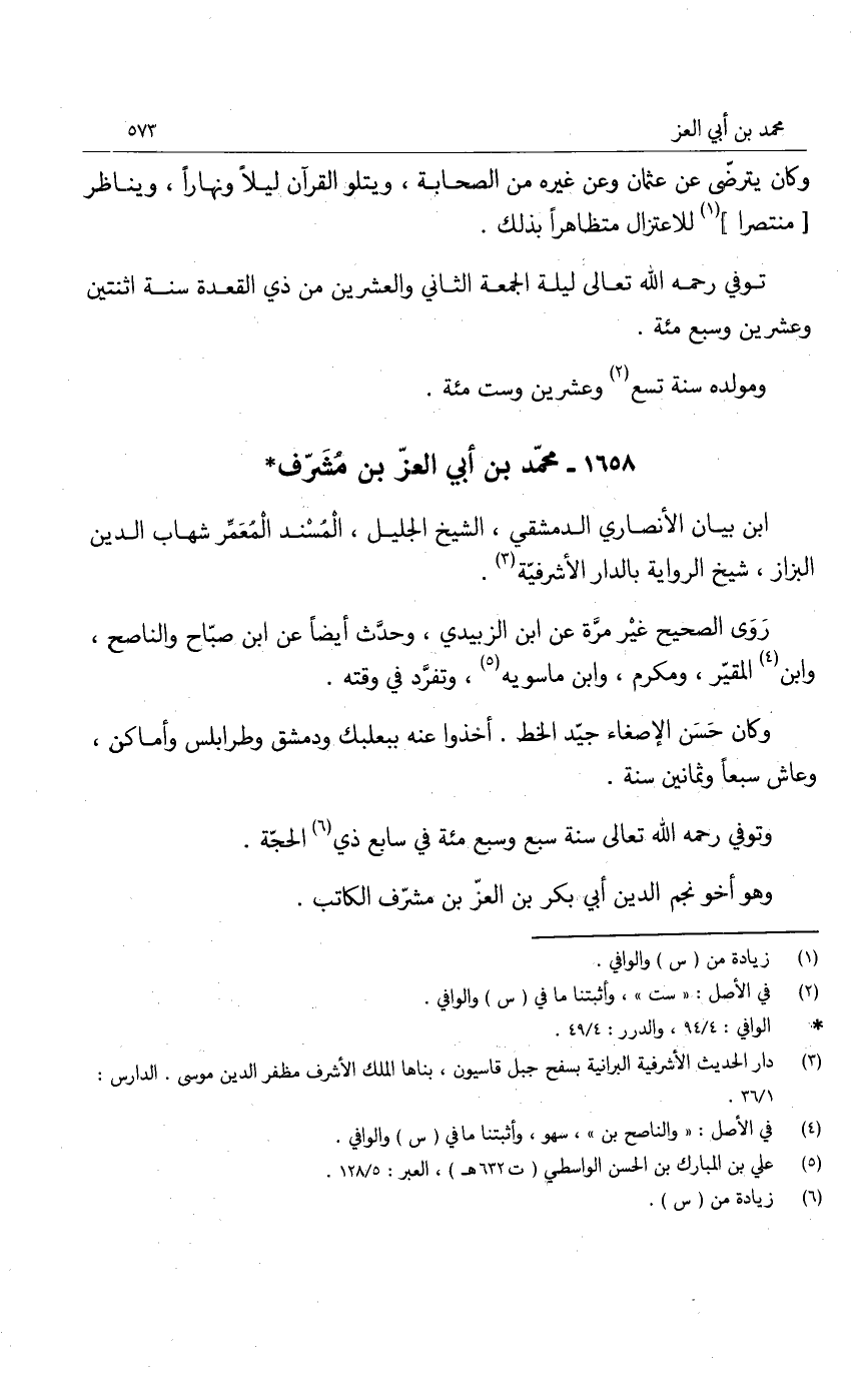 وهو أخو نجم الدين أبي بكر بن العز بن مشرف الكاتب.
