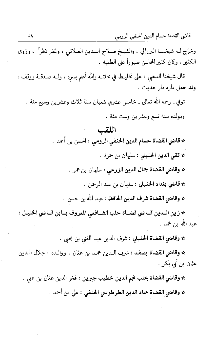 قاضي القضاة حسام الدين الحنفي الرومي: الحسن بن أحمد.