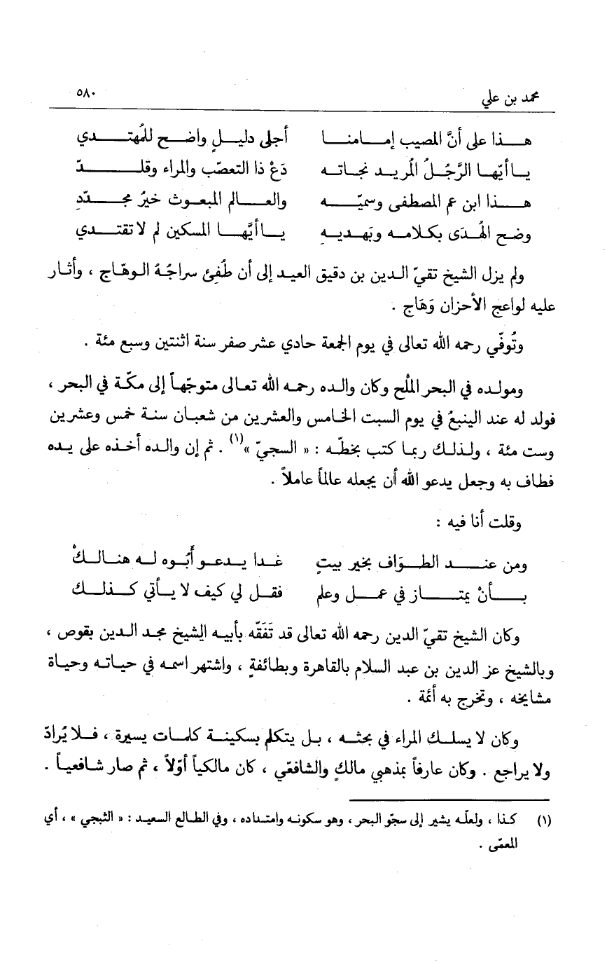 ولم يزل الشيخ تقي الدين بن دقيق العيد إلى أن طفئ سراجه الوهاج، وأثار عليه لواعج الأحزان وهاج.