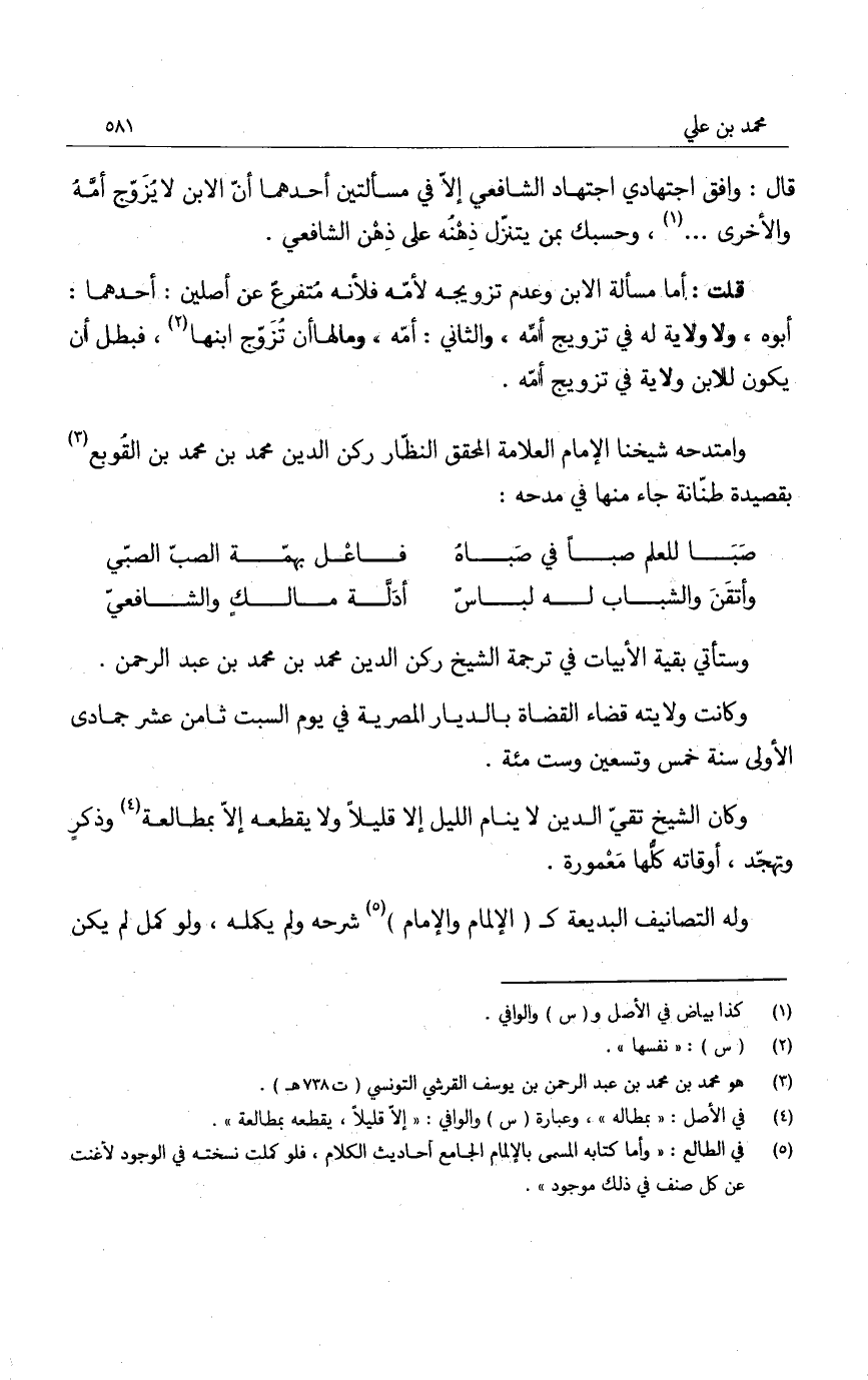 وامتدحه شيخنا الإمام العلامة المحقق النظار ركن الدين محمد بن محمد بن القوبع بقصيدة طنانة جاء منها في مدحه: