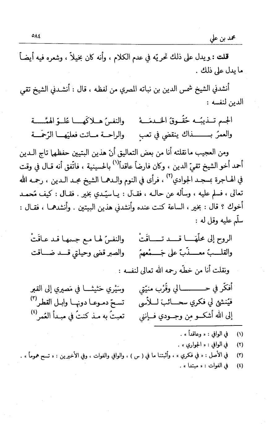 أنشدني الشيخ شمس الدين بن نباته المصري من لفظه، قال: أنشدني الشيخ تقي الدين لنفسه: