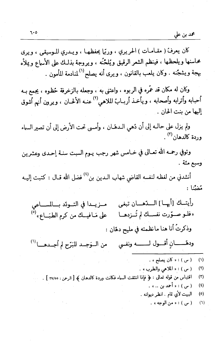 ولم يزل على حاله إلى أن دهي الدهان، وأمسى تحت الأرض إلى أن تصير السماء وردة كالدهان.