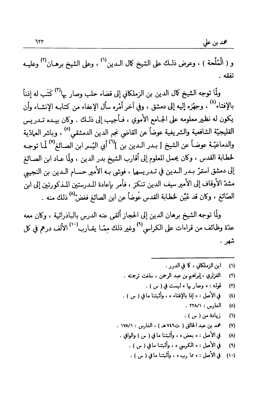 الملحة "، وعرض ذلك على الشيخ كمال الدين، وعلى الشيخ برهان وعليه تفقه.
