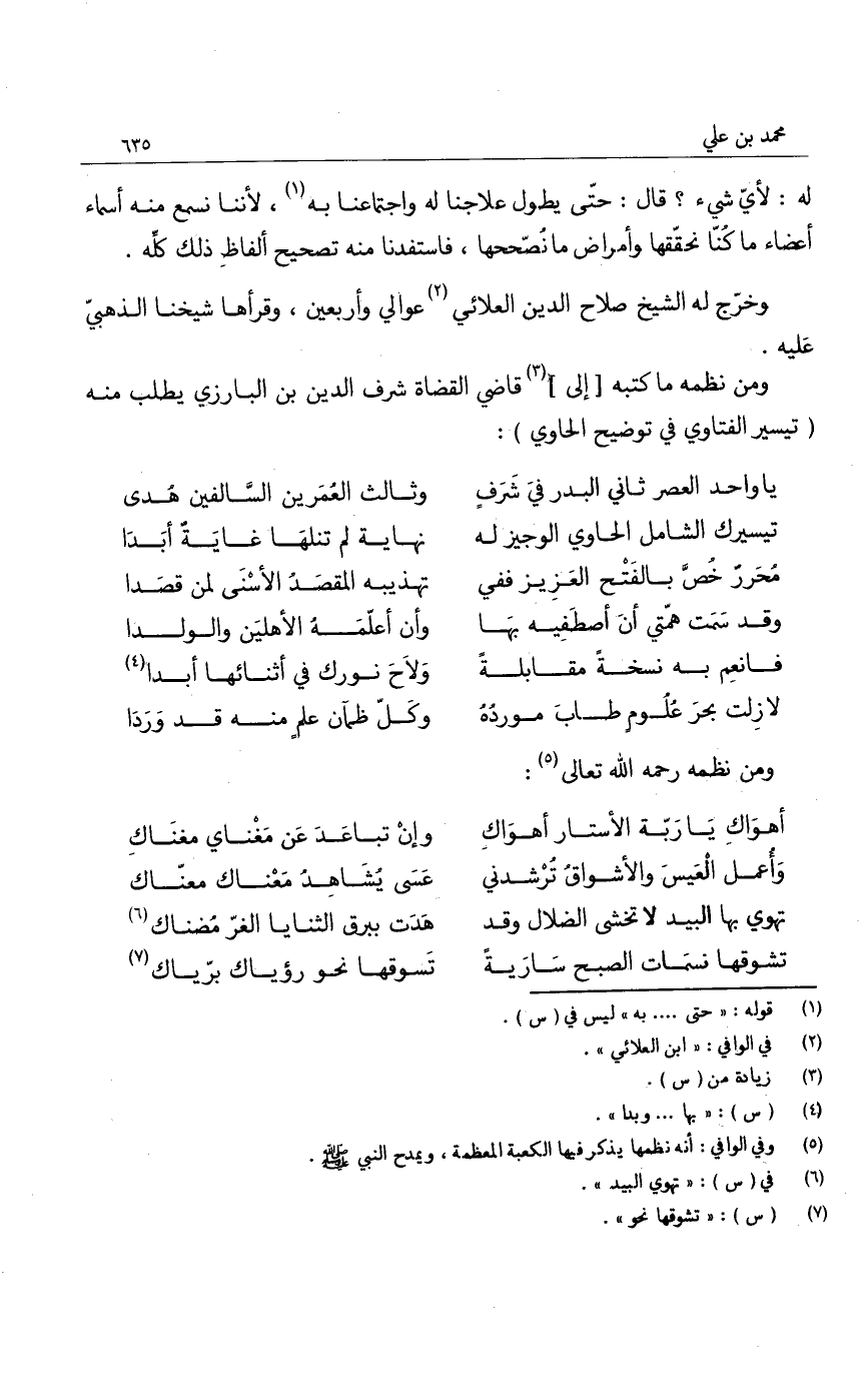 ومن نظمه ما كتبه إلى قاضي القضاة شرف الدين بن البارزي يطلب منه " تيسير الفتاوي في توضيح الحاوي ":