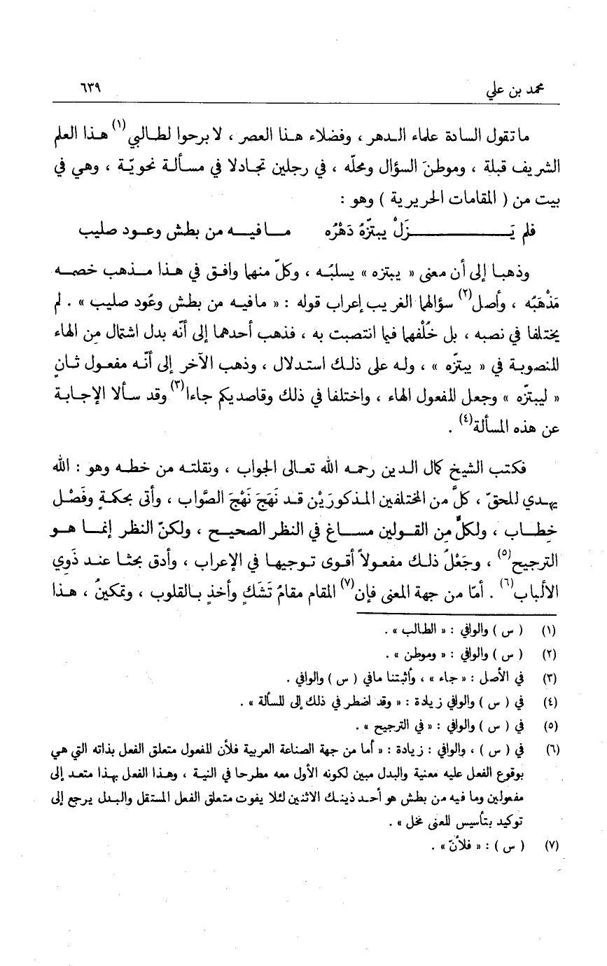 ما تقول السادة علماء الدهر، وفضلاء هذا العصر، لا برحوا لطالبي هذا العلم الشريف قبلة، وموطن السؤال ومحله، في رجلين تجادلا في مسألة نحوية، وهي في بيت من " المقامات الحريرية " وهو: