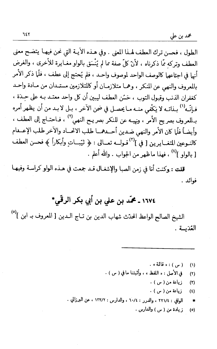 قلت: وكنت أنا في زمن الصبا والإشغال قد جمعت في هذه الواو كراسة وفيها فوائد.