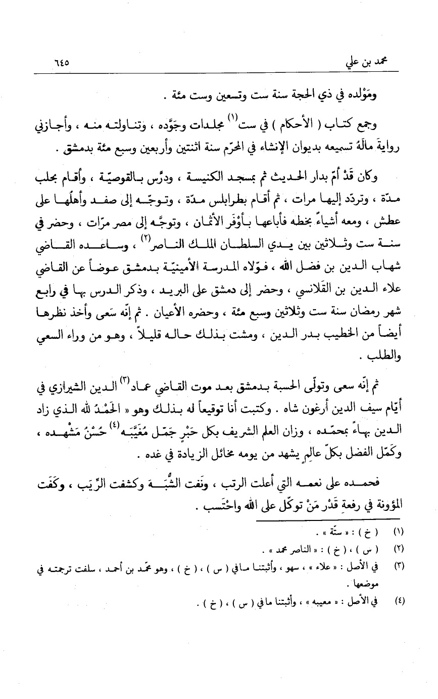 ومولده في ذي الحجة سنة ست وتسعين وست مئة.