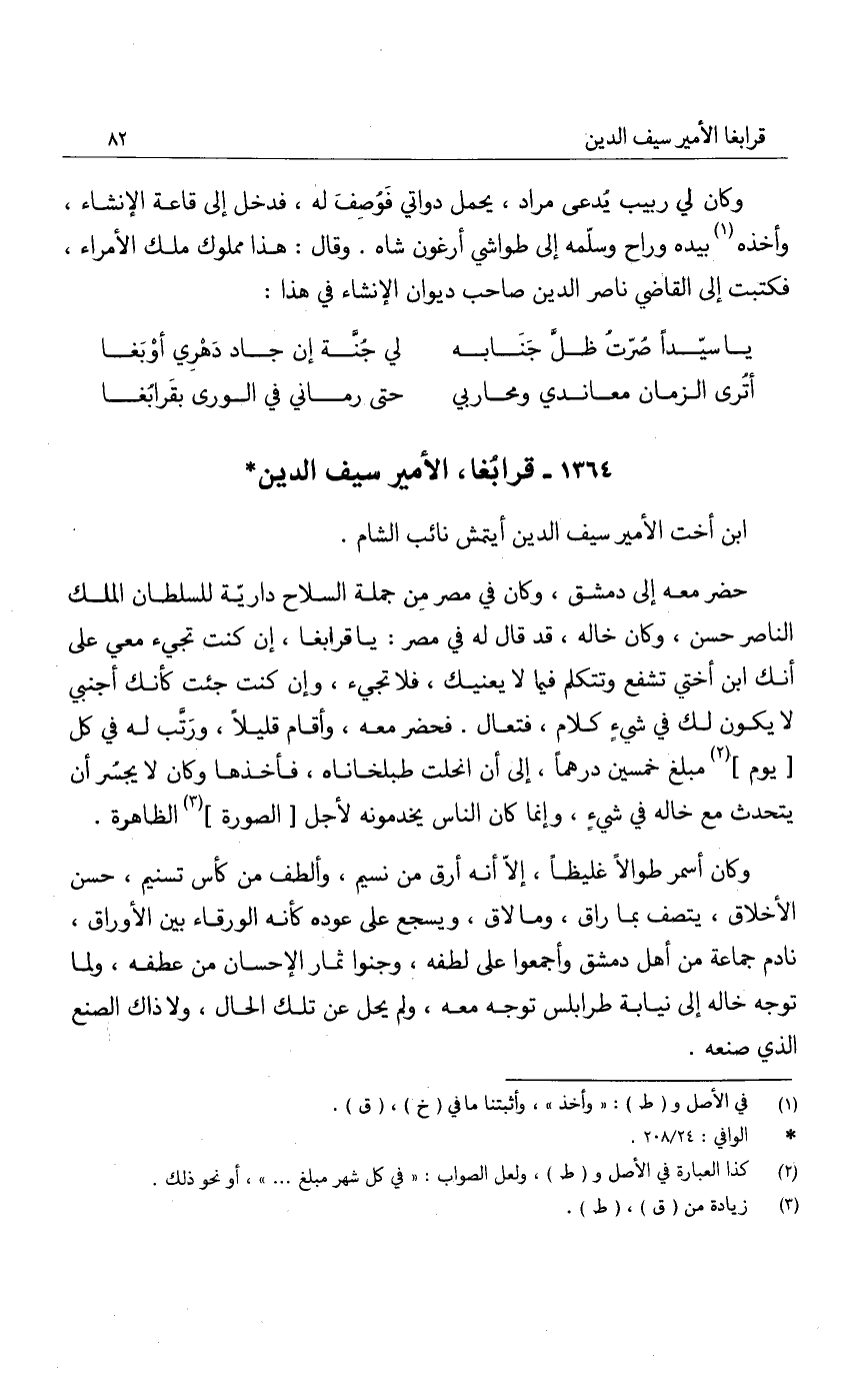 وكان لي ربيب يدعى مراد، يحمل دواتي فوصف له، فدخل إلى قاعة الإنشاء، وأخذه بيده وراح وسلمه إلى طواشي أرغون شاه. وقال: هذا مملوك ملك الأمراء، فكتبت إلى القاضي ناصر الدين صاحب ديوان الإنشاء في هذا: