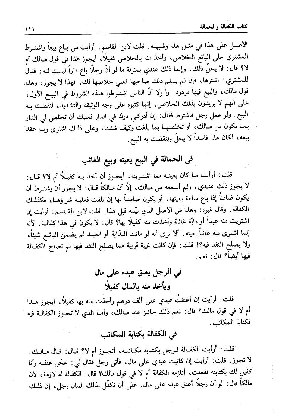 ِ قُلْتُ: أَرَأَيْتَ الْكَفَالَةَ لِرَجُلٍ بِكِتَابَةِ مُكَاتَبِهِ، أَتَجُوزُ أَمْ لَا؟