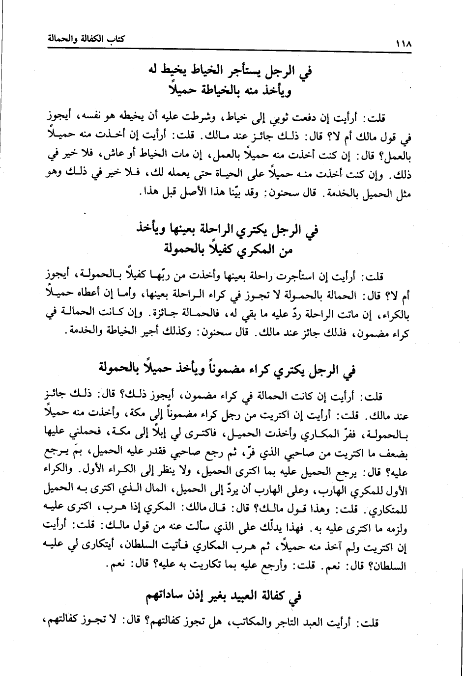 ْ قُلْتُ: أَرَأَيْتَ الْعَبْدَ التَّاجِرَ وَالْمُكَاتَبَ، هَلْ تَجُوزُ كَفَالَتُهُمْ؟