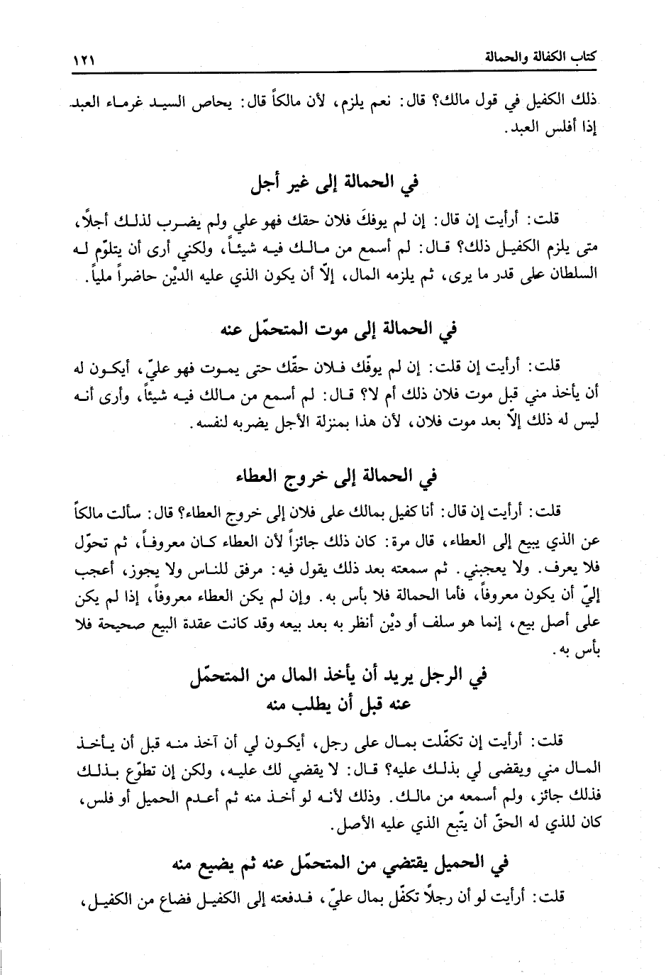 ذَلِكَ الْكَفِيلَ فِي قَوْلِ مَالِكٍ؟