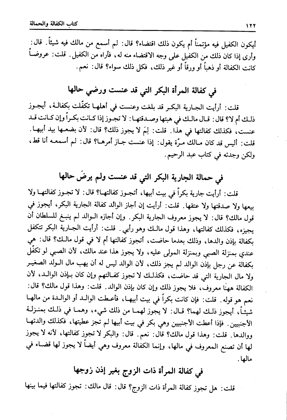 قَالَ: قَالَ مَالِكٌ: تَجُوزُ كَفَالَتُهَا فِيمَا بَيْنَهَا