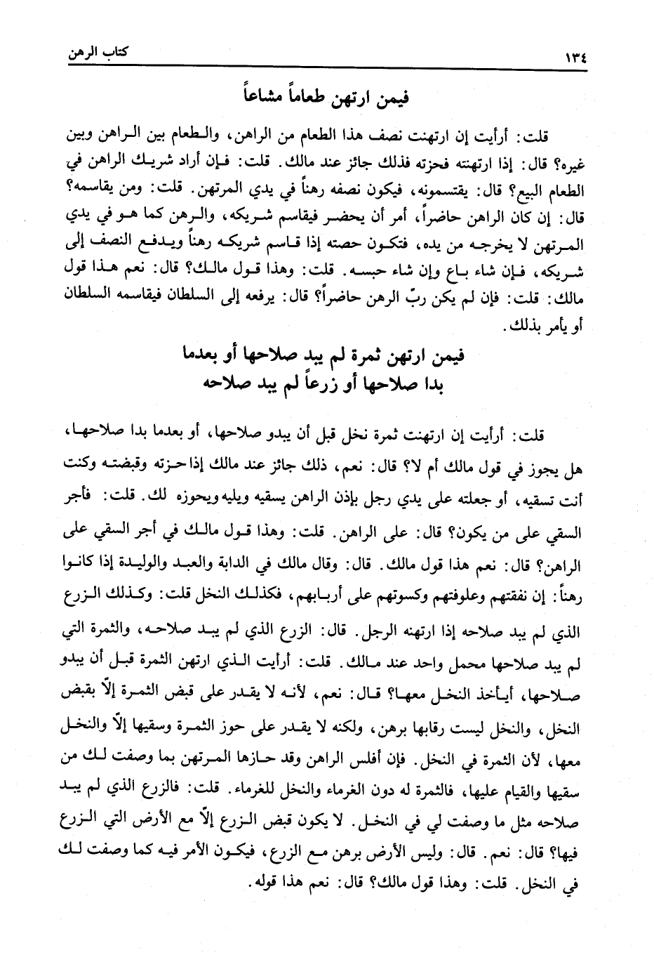 قُلْتُ: أَرَأَيْتَ إنْ ارْتَهَنْت نِصْفَ هَذَا الطَّعَامِ مِنْ الرَّاهِنِ وَالطَّعَامُ، بَيْنَ الرَّاهِنِ وَبَيْنَ غَيْرِهِ؟