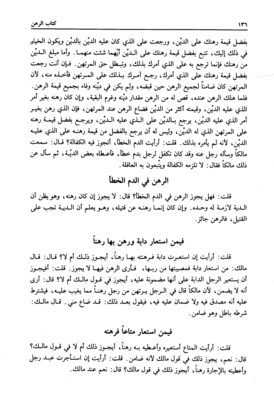 ُ قُلْتُ: أَرَأَيْتَ الْمَتَاعَ أَسْتَعِيرُهُ وَأُعْطِيهِ بِهِ رَهْنًا، أَيَجُوزُ ذَلِكَ أَمْ لَا فِي قَوْلِ مَالِكٍ؟