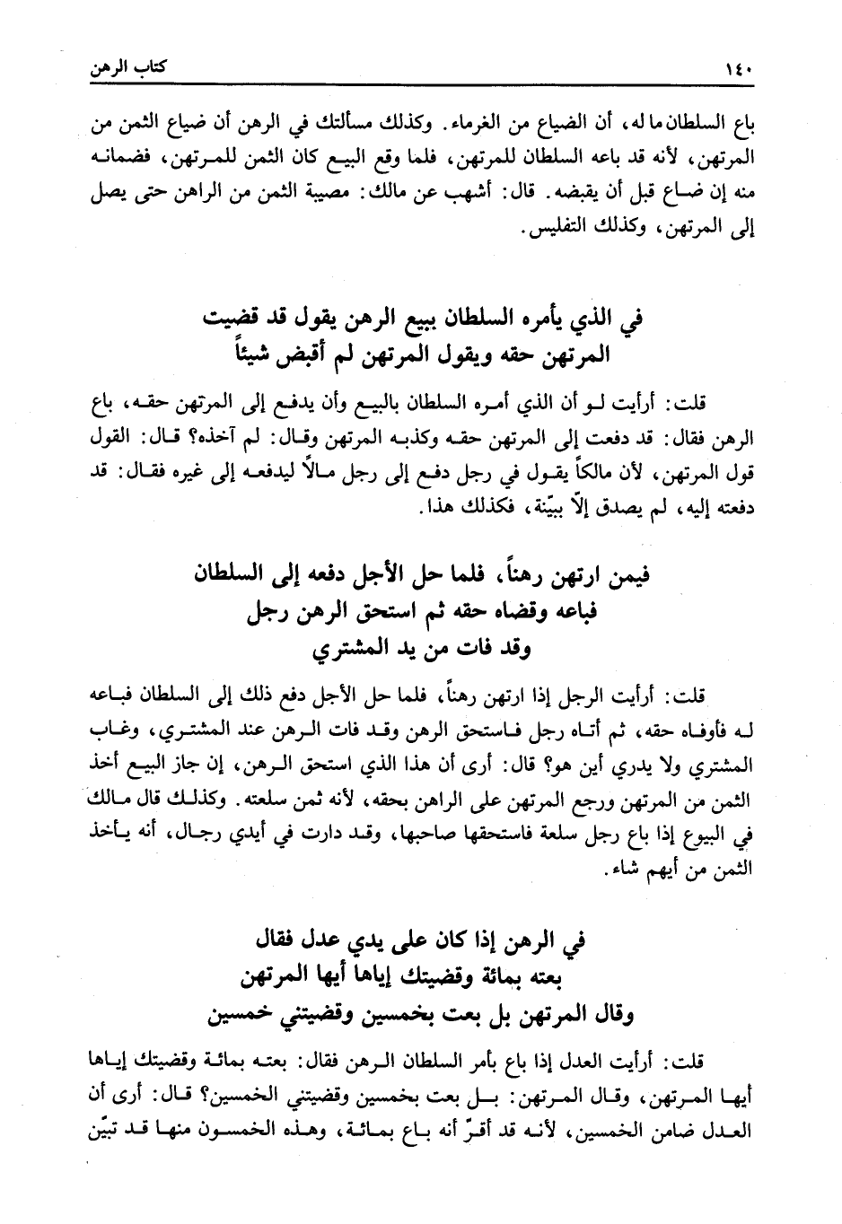 قُلْتُ: أَرَأَيْتَ الْعَدْلَ إذَا بَاعَ بِأَمْرِ السُّلْطَانِ الرَّهْنَ فَقَالَ: بِعْتُهُ بِمِائَةٍ وَقَضَيْتُك إيَّاهَا أَيُّهَا الْمُرْتَهِنُ. وَقَالَ الْمُرْتَهِنُ: بَلْ بِعْتُ بِخَمْسِينَ وَقَضَيْتنِي الْخَمْسِينَ؟