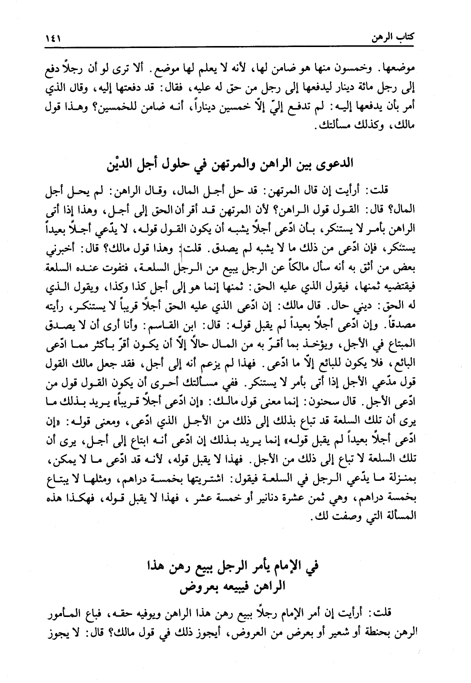 ِ قُلْتُ: أَرَأَيْتَ إنْ قَالَ الْمُرْتَهِنُ: قَدْ حَلَّ أَجَلُ الْمَالِ، وَقَالَ الرَّاهِنُ لَمْ يَحِلَّ أَجَلُ الْمَالِ؟