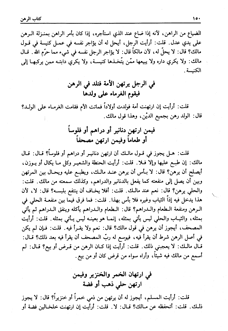 قُلْتُ: أَرَأَيْتَ الْمُصْحَفَ، أَيَجُوزُ أَنْ يُرْهَنَ فِي قَوْلِ مَالِكٍ؟