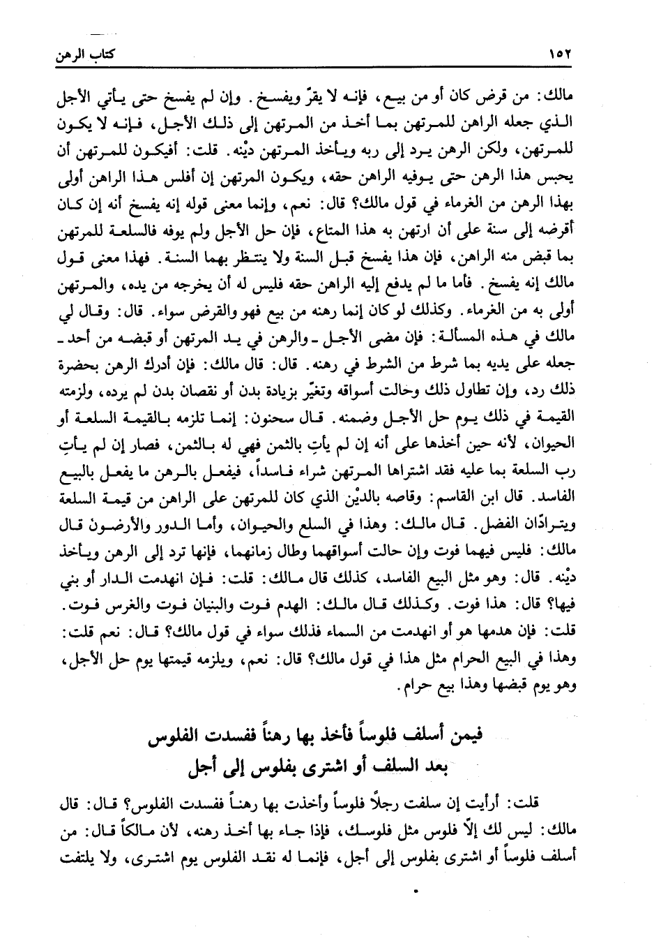 ِ قُلْتُ: أَرَأَيْتَ إنْ سَلَّفْتُ رَجُلًا فُلُوسًا وَأَخَذْت بِهَا رَهْنًا فَفَسَدَتْ الْفُلُوسُ قَالَ: قَالَ مَالِكٌ: لَيْسَ لَكَ إلَّا فُلُوسٌ مِثْلُ فُلُوسِكَ فَإِذَا جَاءَ بِهَا أَخَذَ رَهْنَهُ؛ لِأَنَّ مَالِكًا قَالَ: مَنْ أَسْلَفَ فُلُوسًا أَوْ اشْتَرَى بِفُلُوسٍ إلَى أَجَلٍ فَإِنَّمَا لَهُ نَقْدُ الْفُلُوسِ يَوْمَ اشْتَرَى، وَلَا يُلْتَفَتُ