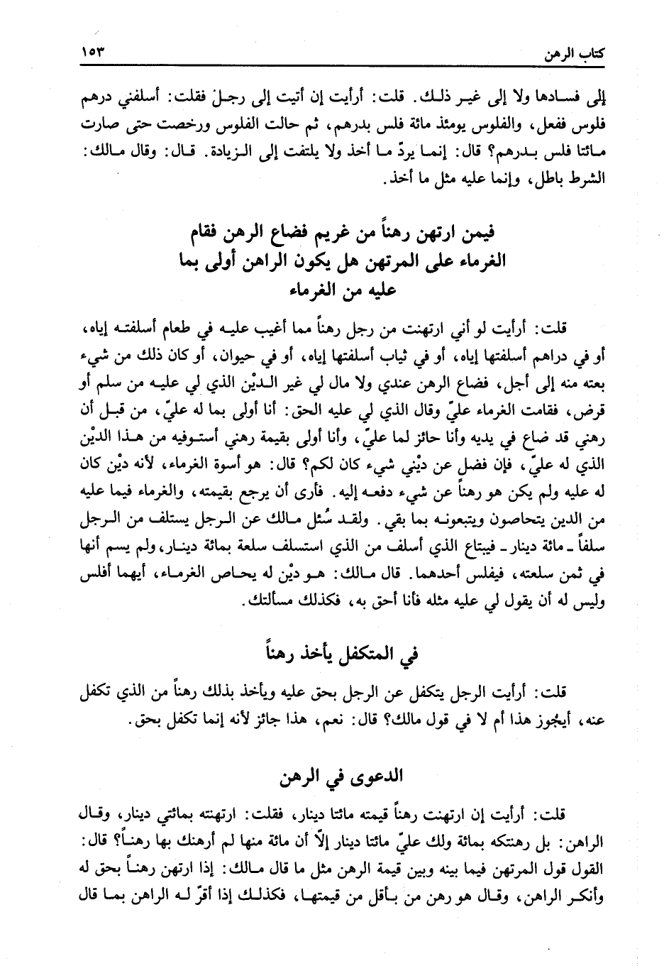 قُلْتُ: أَرَأَيْتَ الرَّجُلَ يَتَكَفَّلُ عَنْ الرَّجُلِ بِحَقٍّ عَلَيْهِ وَيَأْخُذُ بِذَلِكَ رَهْنًا مِنْ الَّذِي تَكَفَّلَ عَنْهُ، أَيَجُوزُ هَذَا أَمْ لَا فِي قَوْلِ مَالِكٍ؟