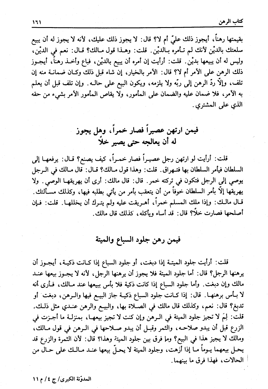 ِ قُلْتُ: أَرَأَيْتَ جُلُودَ الْمَيْتَةِ إذَا دُبِغَتْ، أَوْ جُلُودَ السِّبَاعِ إذَا كَانَتْ ذَكِيَّةً، أَيَجُوزُ أَنْ يَرْهَنَهَا الرَّجُلُ؟