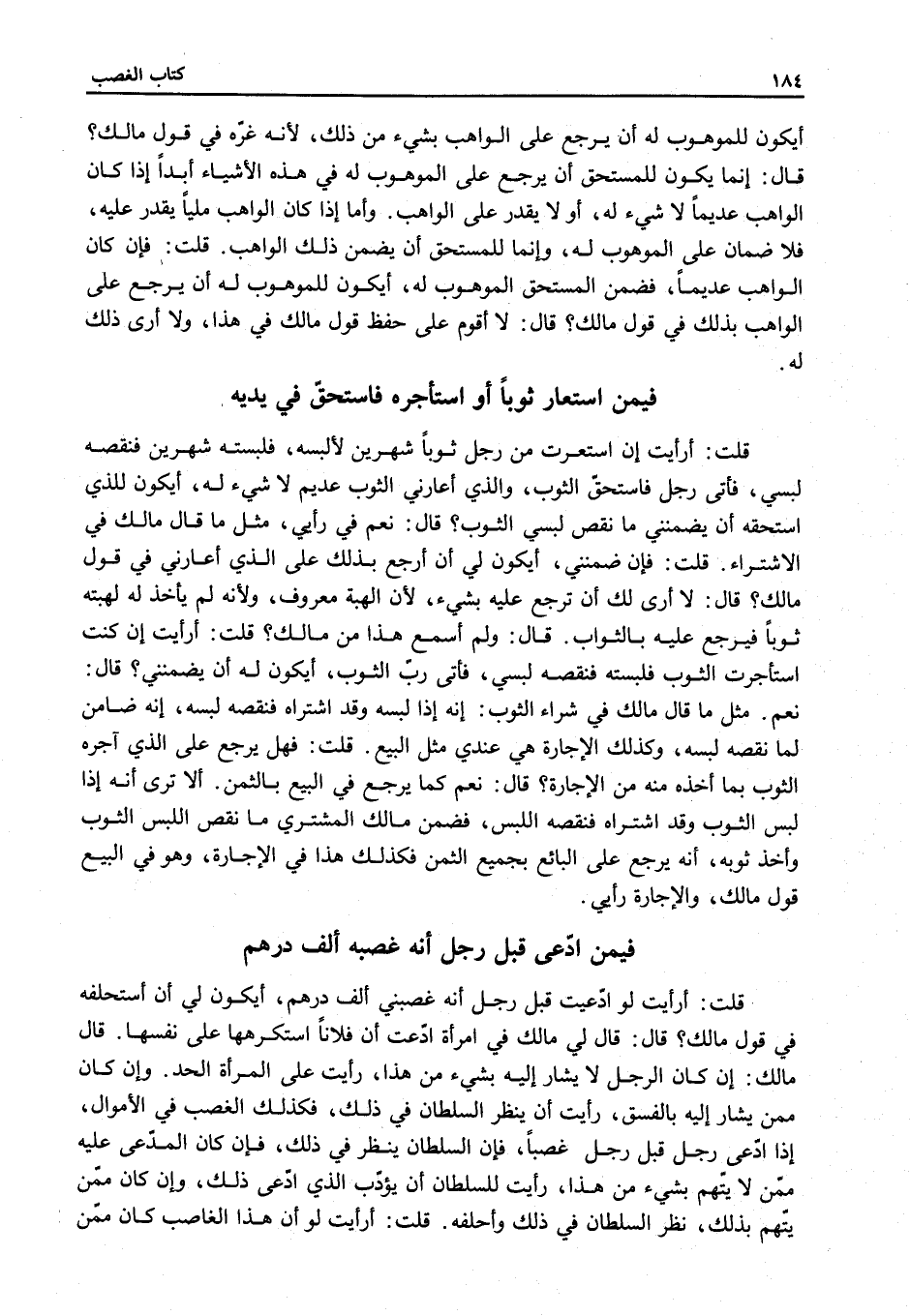ٍ قُلْتُ: أَرَأَيْتَ لَوْ ادَّعَيْت قِبَلَ رَجُلٍ أَنَّهُ غَصَبَنِي أَلْفَ دِرْهَمٍ، أَيَكُونُ لِي أَنْ أَسْتَحْلِفَهُ فِي قَوْلِ مَالِكٍ؟