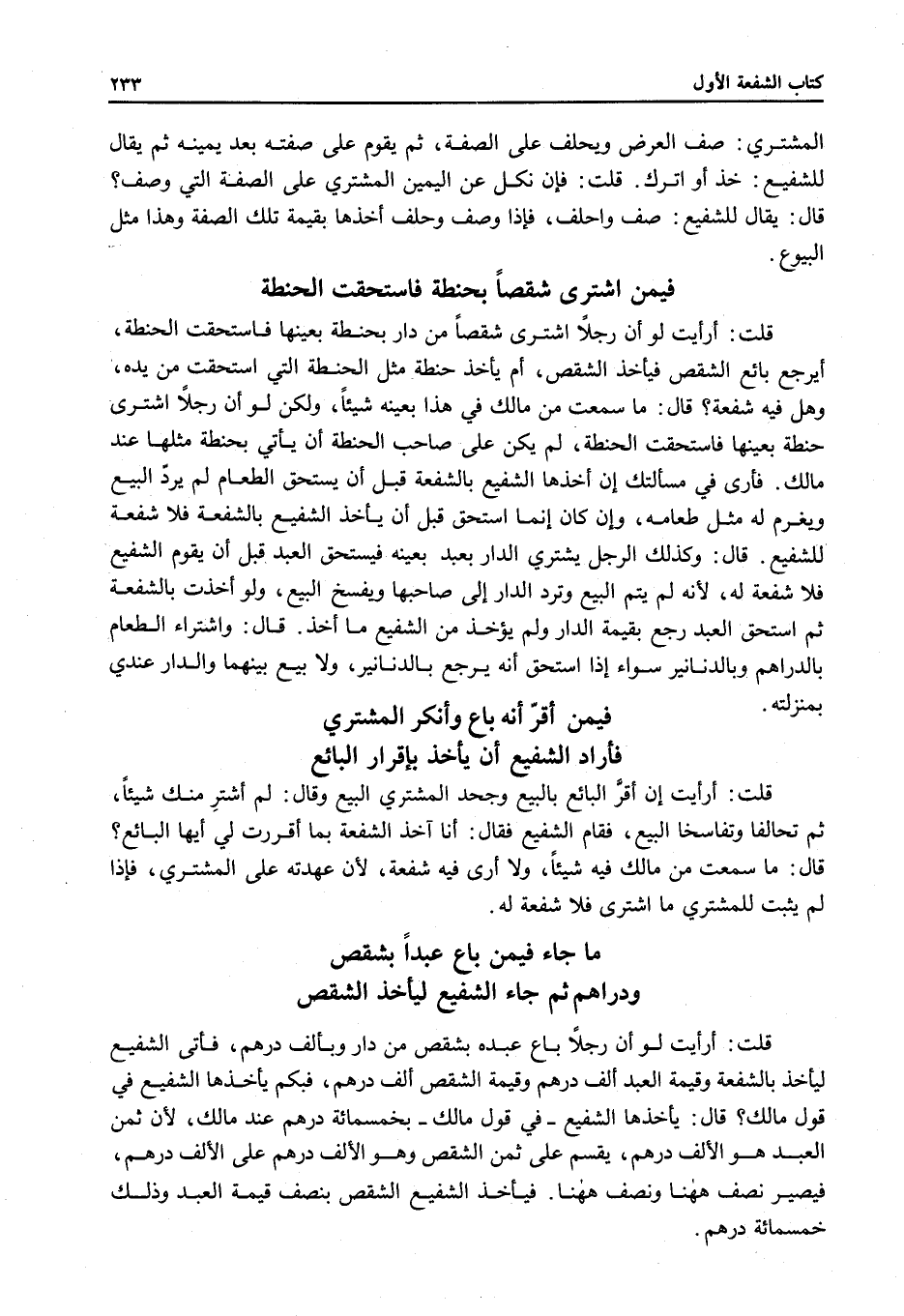 قَالَ: يُقَالُ لِلشَّفِيعِ: صِفْ وَاحْلِفْ، فَإِذَا وَصَفَ وَحَلَفَ أَخَذَهَا بِقِيمَةِ تِلْكَ الصِّفَةِ وَهَذَا مِثْلُ الْبُيُوعِ.