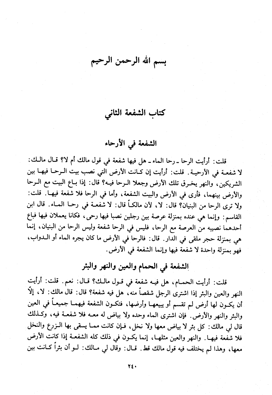 [كِتَابُ الشُّفْعَةِ الثَّانِي] [الشُّفْعَةُ فِي الْأَرْحَاءِ]