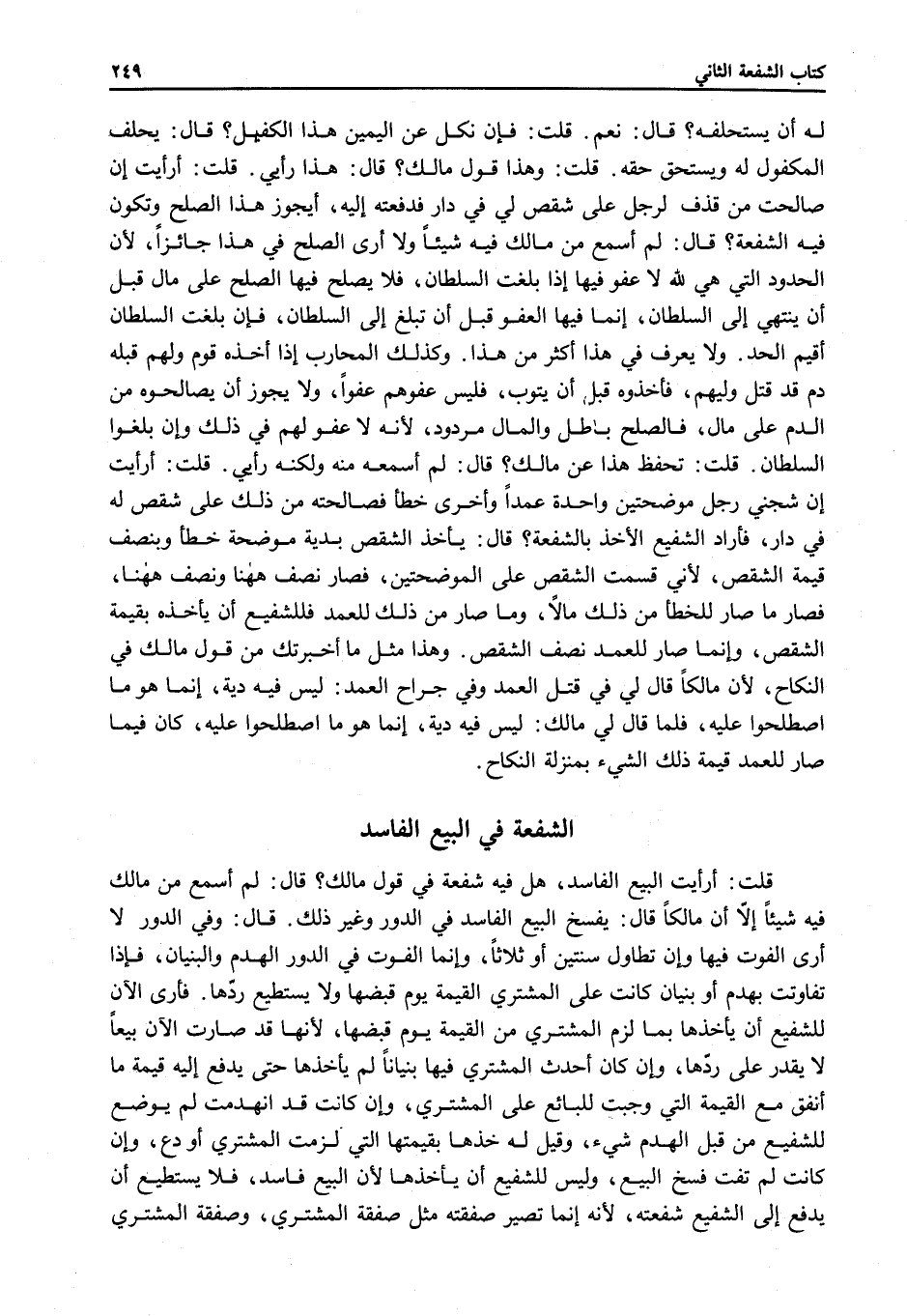 ِ قُلْت: أَرَأَيْت الْبَيْعَ الْفَاسِدَ، هَلْ فِيهِ شُفْعَةٌ فِي قَوْلِ مَالِكٍ؟