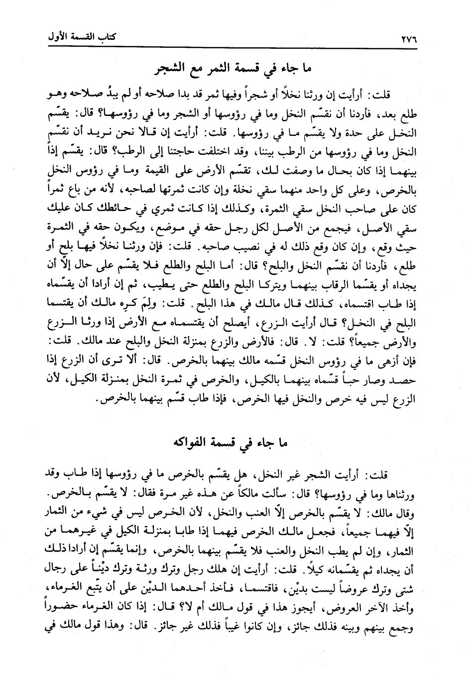 ِ قُلْتُ: أَرَأَيْتَ الشَّجَرَ غَيْرَ النَّخْلِ، هَلْ يُقَسَّمُ بِالْخَرْصِ مَا فِي رُءُوسِهَا إذَا طَابَ وَقَدْ وَرِثْنَاهَا وَمَا فِي رُءُوسِهَا؟
