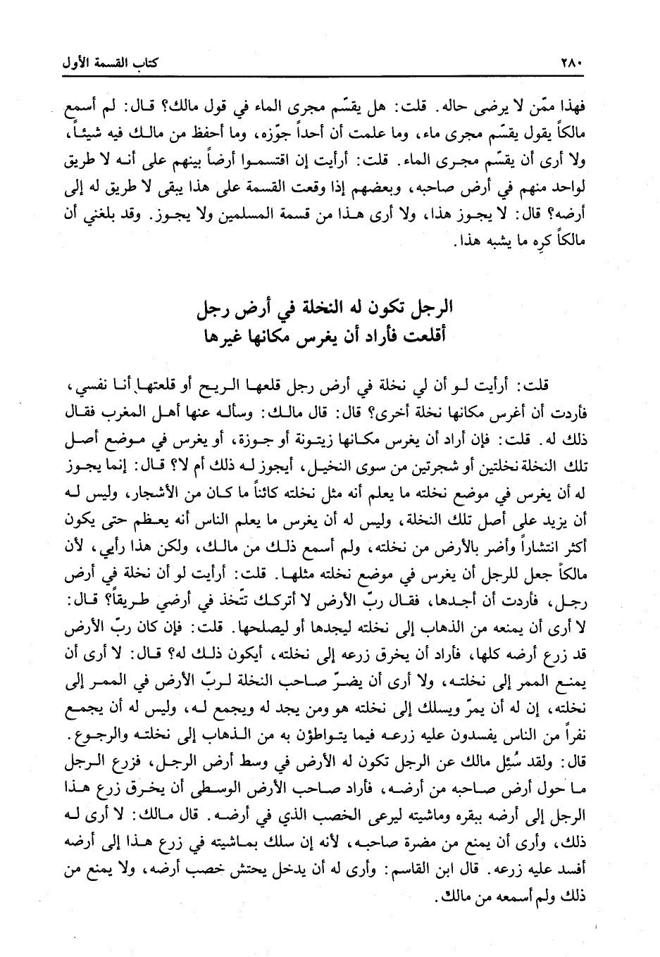 قَالَ: لَمْ أَسْمَعْ مَالِكًا يَقُولُ يُقَسَّمُ مَجْرَى مَاءٍ، وَمَا عَلِمْتُ أَنَّ أَحَدًا جَوَّزَهُ، وَمَا أَحْفَظُ مِنْ مَالِكٍ فِيهِ شَيْئًا، وَلَا أَرَى أَنْ يُقَسَّمَ مَجْرَى الْمَاءِ.