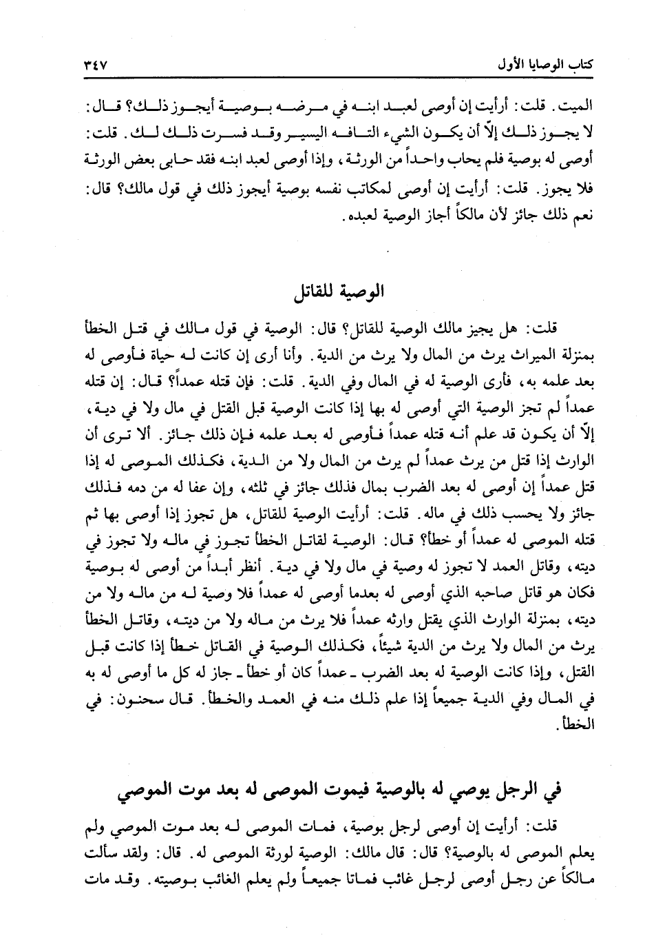 ِ قُلْتُ: هَلْ يُجِيزُ مَالِكٌ الْوَصِيَّةَ لِلْقَاتِلِ؟