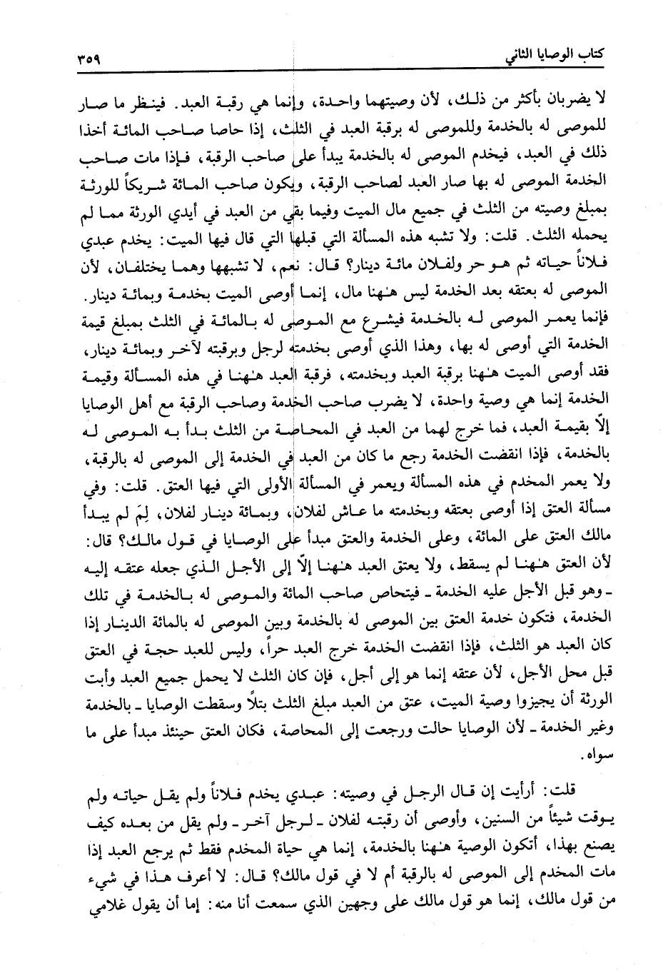 قُلْتُ: وَلَا تُشْبِهُ هَذِهِ الْمَسْأَلَةُ الَّتِي قَبْلَهَا، الَّتِي قَالَ فِيهَا الْمَيِّتُ: يَخْدُمُ عَبْدِي فُلَانًا حَيَاتَهُ ثُمَّ هُوَ حُرٌّ وَلِفُلَانٍ مِائَةُ دِينَارٍ؟