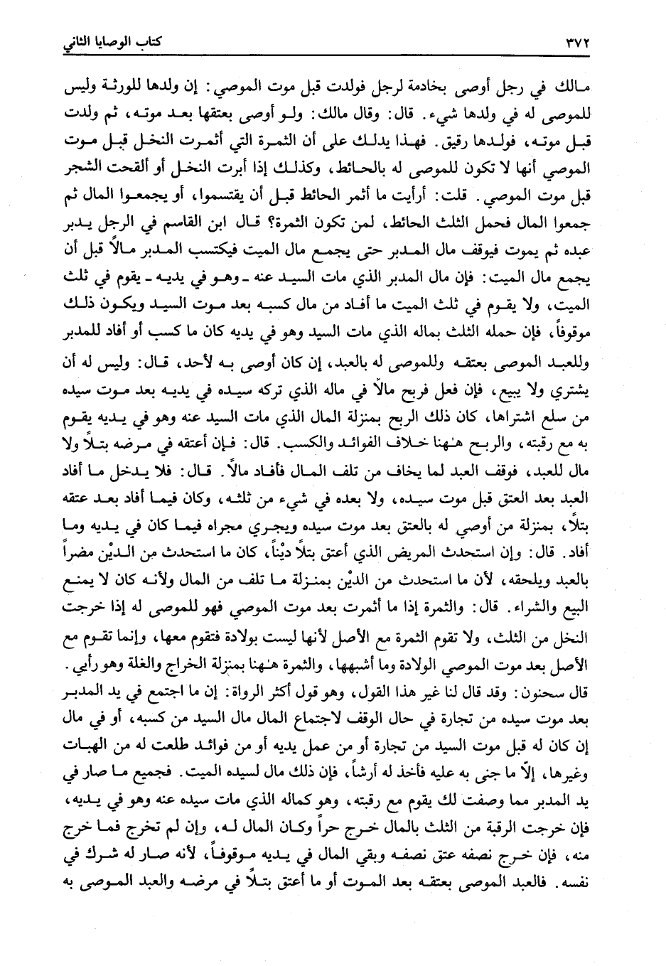 قَالَ: وَقَالَ مَالِكٌ: وَلَوْ أَوْصَى بِعِتْقِهَا بَعْدَ مَوْتِهِ، ثُمَّ وَلَدَتْ قَبْلَ مَوْتِهِ، فَوَلَدُهَا رَقِيقٌ. فَهَذَا يَدُلُّكَ عَلَى أَنَّ الثَّمَرَةَ الَّتِي أَثْمَرَتْ النَّخْلُ قَبْلَ مَوْتِ الْمُوصِي أَنَّهَا لَا تَكُونُ لِلْمُوصَى لَهُ بِالْحَائِطِ، وَكَذَلِكَ إذَا أُبِّرَتْ النَّخْلُ أَوْ أُلْقِحَتْ الشَّجَرُ قَبْلَ مَوْتِ الْمُوصِي.