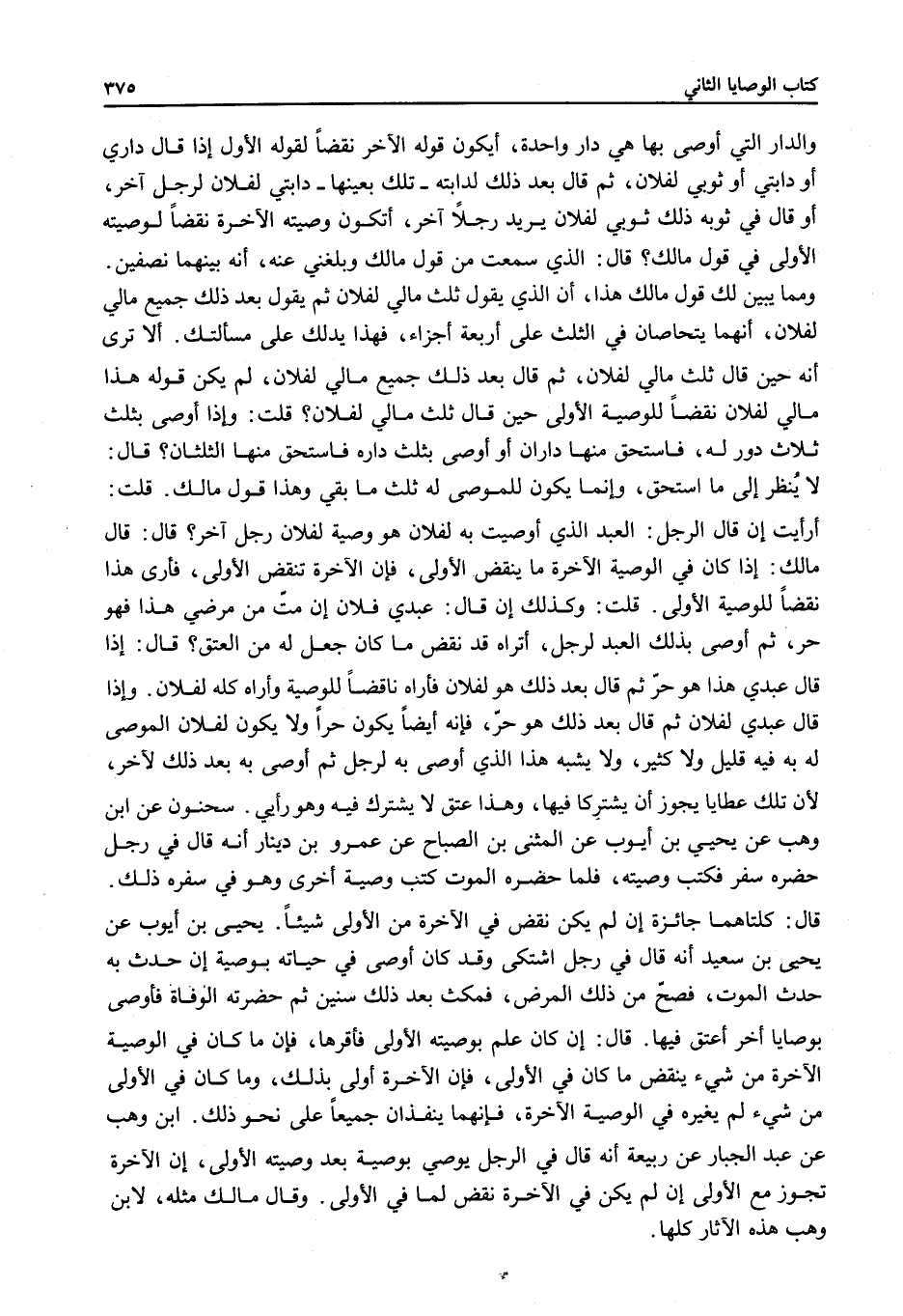 ابْنُ وَهْبٍ عَنْ عَبْدِ الْجَبَّارِ عَنْ رَبِيعَةَ أَنَّهُ قَالَ فِي الرَّجُلِ يُوصِي بِوَصِيَّةٍ بَعْدَ وَصِيَّتِهِ الْأُولَى، إنَّ الْآخِرَةَ تَجُوزُ مَعَ الْأُولَى إنْ لَمْ يَكُنْ فِي الْآخِرَةِ نَقْضٌ لِمَا فِي الْأُولَى. وَقَالَ مَالِكٌ مِثْلَهُ، لِابْنِ وَهْبٍ هَذِهِ الْآثَارُ كُلُّهَا.