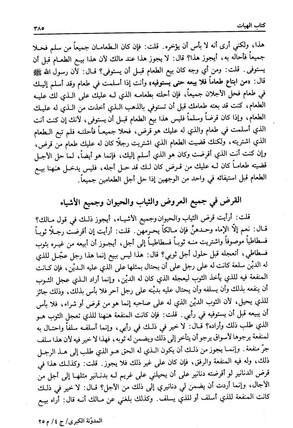 [الْقَرْضُ فِي جَمِيعِ الْعُرُوضِ وَالثِّيَابِ وَالْحَيَوَانِ وَجَمِيعِ الْأَشْيَاءِ]