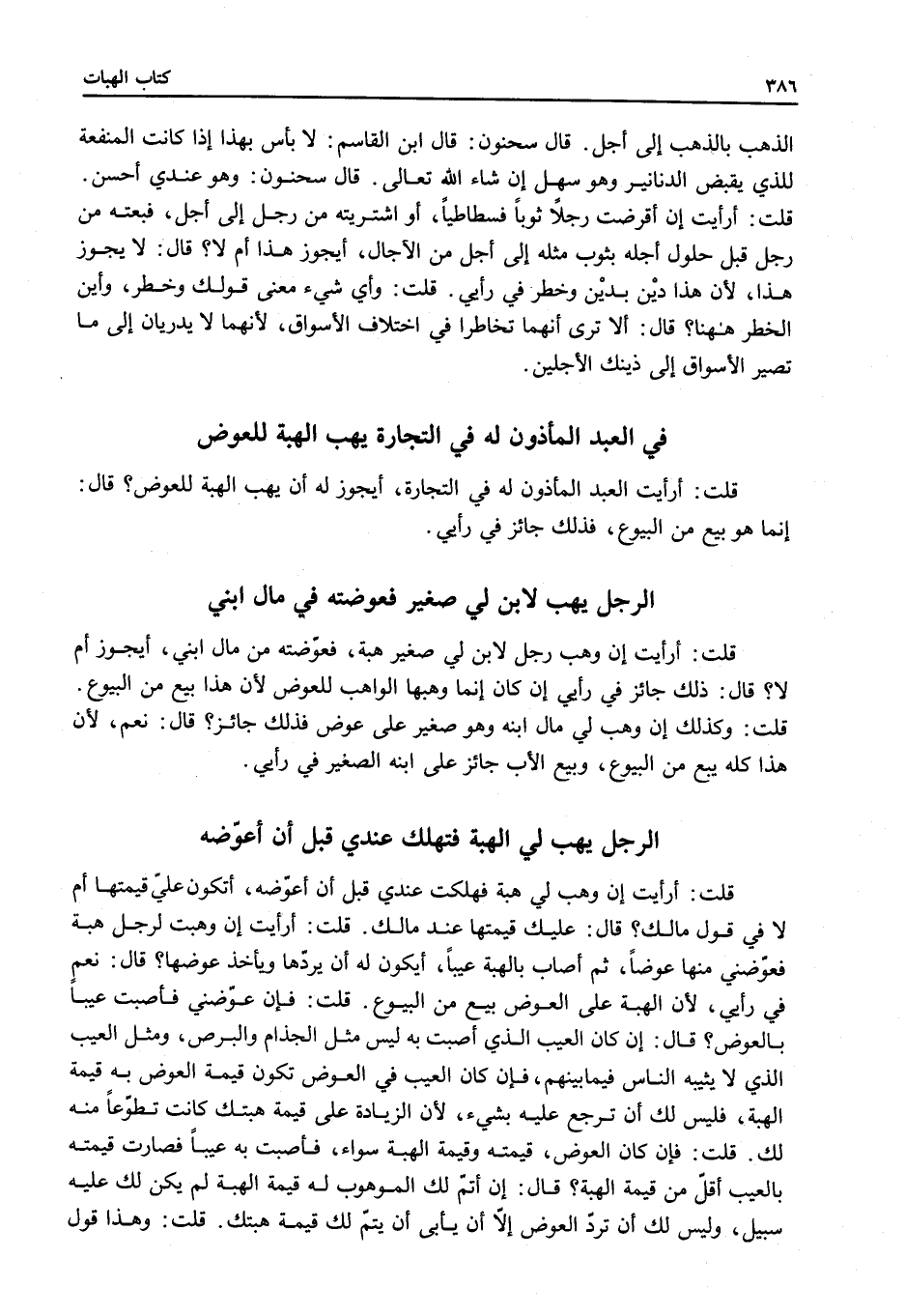 ِ قُلْت: أَرَأَيْت الْعَبْدَ الْمَأْذُونَ لَهُ فِي التِّجَارَةِ، أَيَجُوزُ لَهُ أَنْ يَهَبَ الْهِبَةَ لِلْعِوَضِ؟ قَالَ: إنَّمَا هُوَ بَيْعٌ مِنْ الْبُيُوعِ، فَذَلِكَ جَائِزٌ فِي رَأْيِي.