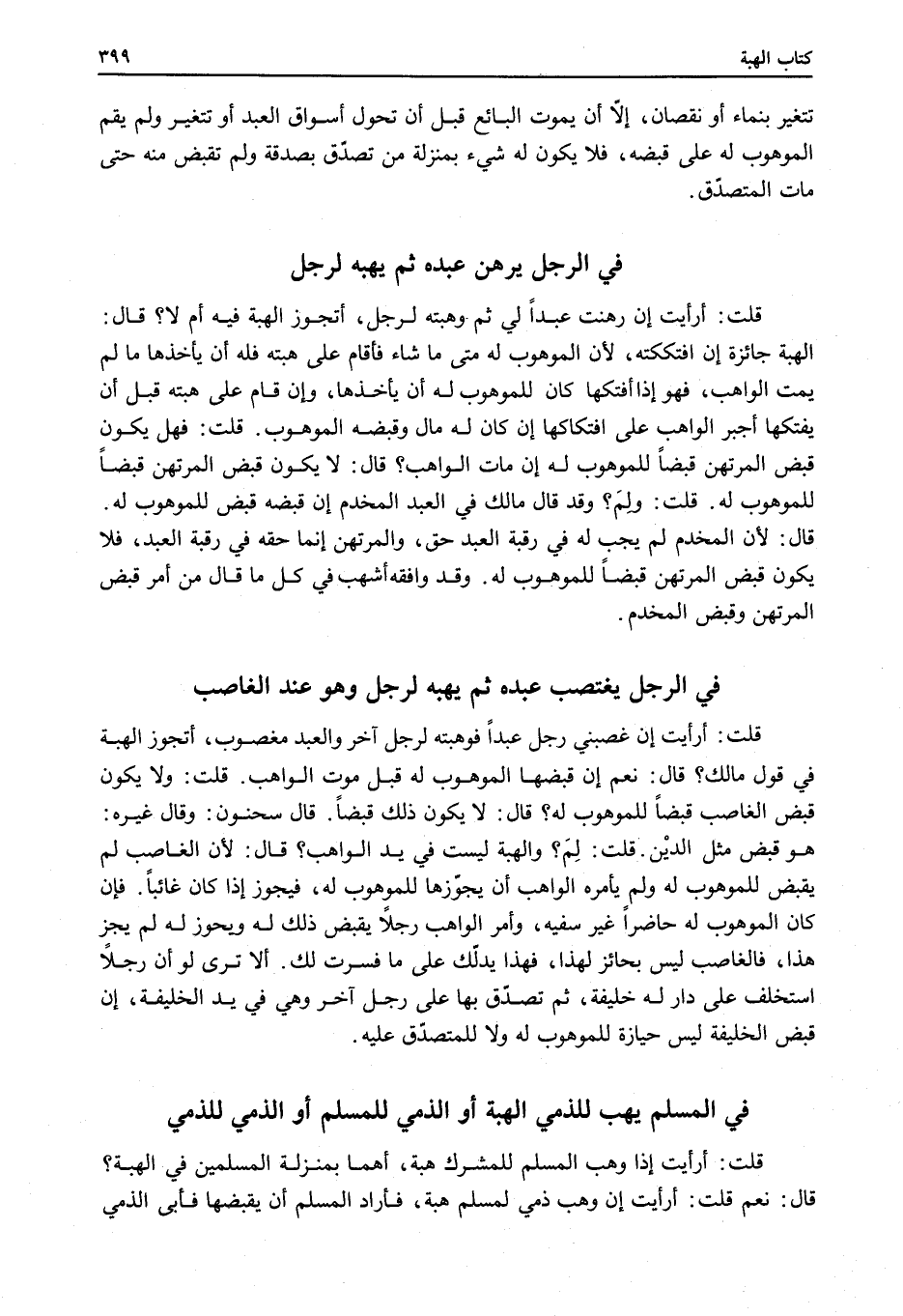 ِّ قُلْت: أَرَأَيْت إذَا وَهَبَ الْمُسْلِمُ لِلْمُشْرِكِ هِبَةً، أَهُمَا بِمَنْزِلَةِ الْمُسْلِمَيْنِ فِي الْهِبَةِ؟ قَالَ: نَعَمْ. قُلْت: أَرَأَيْت إنْ وَهَبَ ذِمِّيٌّ لِمُسْلِمٍ هِبَةً، فَأَرَادَ الْمُسْلِمُ أَنْ يَقْبِضَهَا فَأَبَى الذِّمِّيُّ