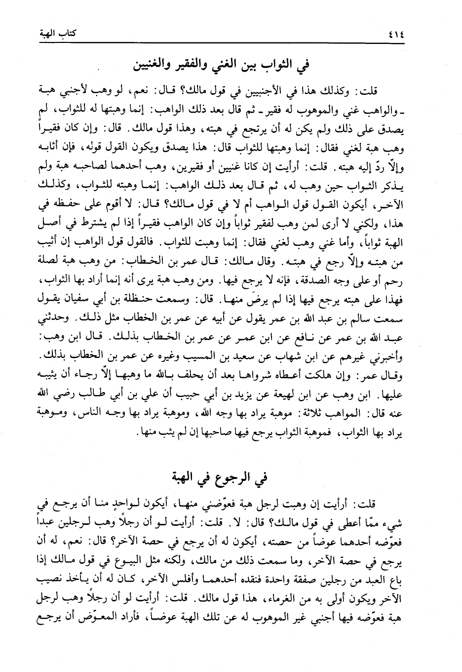 فِي الثَّوَابِ بَيْنَ الْغَنِيِّ وَالْفَقِيرِ وَالْغَنِيَّيْنِ قُلْت: وَكَذَلِكَ هَذَا فِي الْأَجْنَبِيَّيْنِ فِي قَوْلِ مَالِكٍ؟