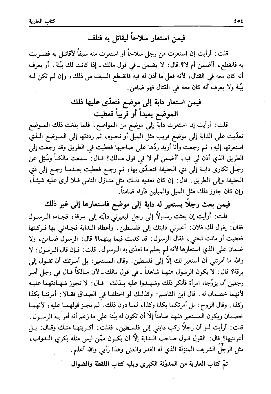 َ قُلْتُ: أَرَأَيْتَ إنْ بَعَثْتُ رَسُولًا إلَى رَجُلٍ لِيُعَيِّرَنِي دَابَّتَهُ إلَى بَرْقَةَ، فَجَاءَهُ الرَّسُولُ فَقَالَ: يَقُولُ لَكَ فُلَانٌ: أَعِرْنِي دَابَّتَكَ إلَى فِلَسْطِينَ. وَأَعْطَاهُ الدَّابَّةَ فَجَاءَنِي بِهَا فَرَكِبْتُهَا فَعَطِبَتْ أَوْ مَاتَتْ تَحْتِي، فَقَالَ الرَّسُولُ: قَدْ كَذَبْتُ فِيمَا بَيْنَهُمَا؟
