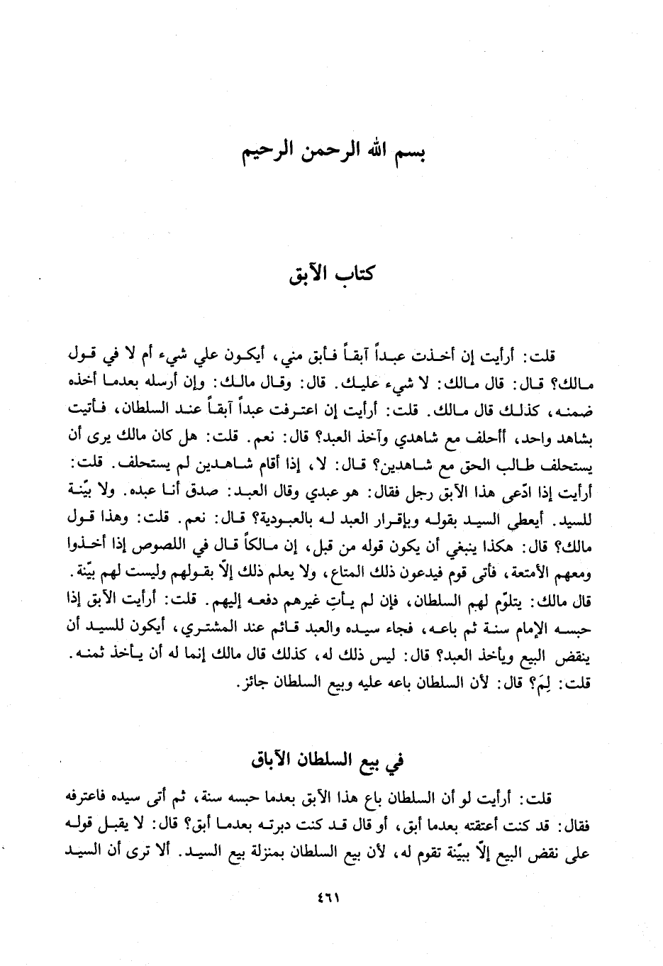 َ قُلْت: أَرَأَيْت لَوْ أَنَّ السُّلْطَانَ بَاعَ هَذَا الْآبِقَ بَعْدَمَا حَبَسَهُ سَنَةً، ثُمَّ أَتَى سَيِّدُهُ فَاعْتَرَفَهُ فَقَالَ: قَدْ كُنْت أَعْتَقْته بَعْدَمَا أَبَقَ، أَوْ قَالَ قَدْ كُنْت دَبَّرْته بَعْدَمَا أَبَقَ؟ قَالَ: لَا يُقْبَلُ قَوْلُهُ عَلَى نَقْضِ الْبَيْعِ إلَّا بِبَيِّنَةٍ تَقُومُ لَهُ، لِأَنَّ بَيْعَ السُّلْطَانِ بِمَنْزِلَةِ بَيْعِ السَّيِّدِ. أَلَا تَرَى أَنَّ السَّيِّدَ