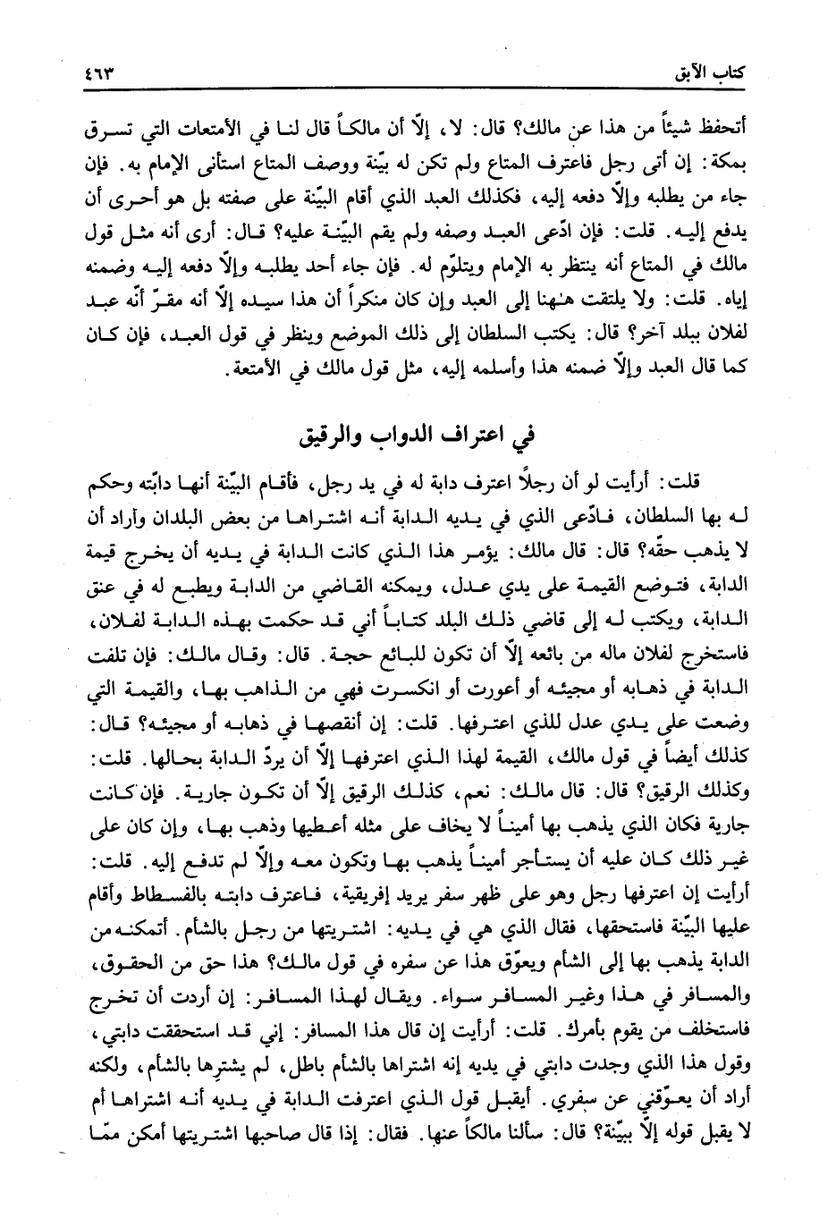 [فِي اعْتِرَافِ الدَّوَابِّ وَالرَّقِيقِ]
